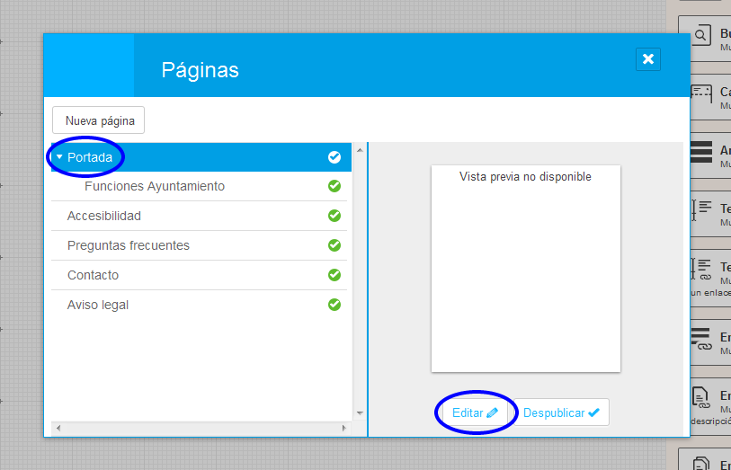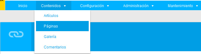 Primero seleccionamos el editor de plantillas para páginas Contenidos -> Páginas