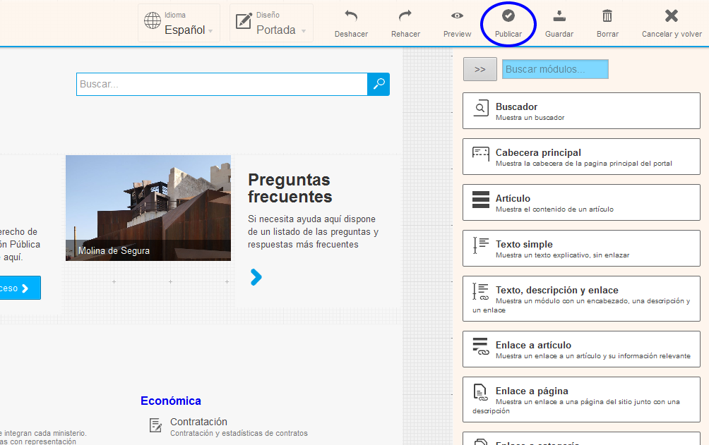 No olvides que los contenidos no estarán disponibles para los ciudadanos hasta que no hagas clic en el botón "Publicar".